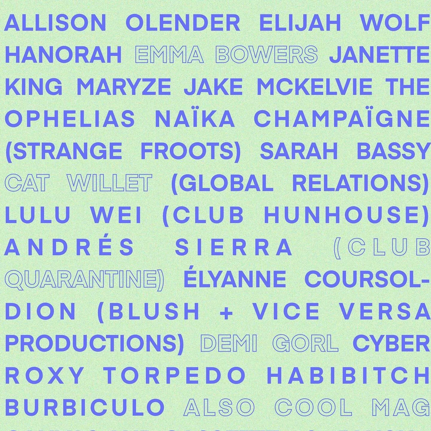 From eight until mid-night, a series of panels on digital events will take place. Some of the presenters include members of Club Quarantine, Global Relations, Club Hunhouse, and Blush: Slumber Party.