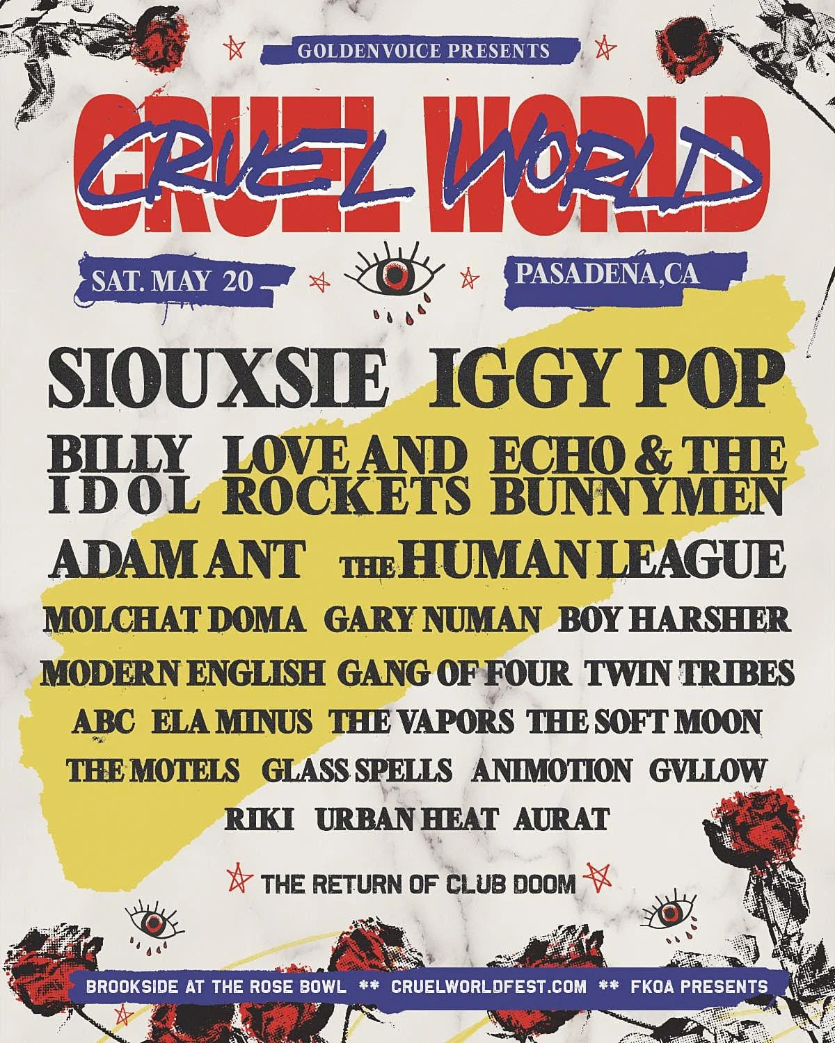 '80s-oriented Cruel World Festival have revealed their 2023 line-up! Taking place May 20th at Brookside at the Rose Bowl in Pasadena, CA, this year’s festivities will include headline performances from former Banshees leader Siouxsie and Iggy Pop.